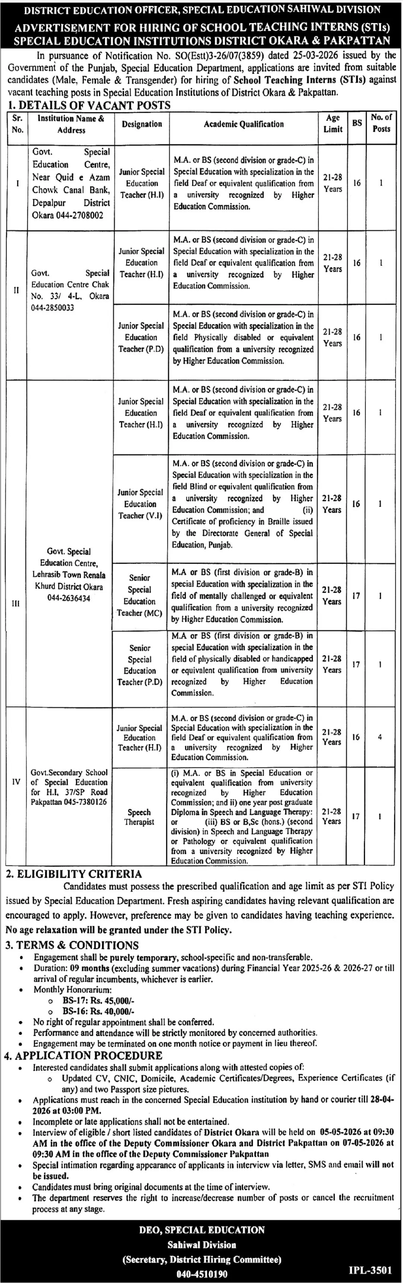 If you are searching latest employment than this jobs is for you , you can become school teaching intern in sahiwal, This job post is advertise in express tribune newspaper , if you wanna update with latest post or jobs in Pakistan then this website will help you , so keep visiting us and get latest job info.